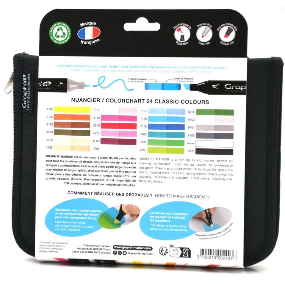 Feutres Graph'It 24 couleurs Classic Marqueurs à Alcool Double-Pointe Biseau et Fine