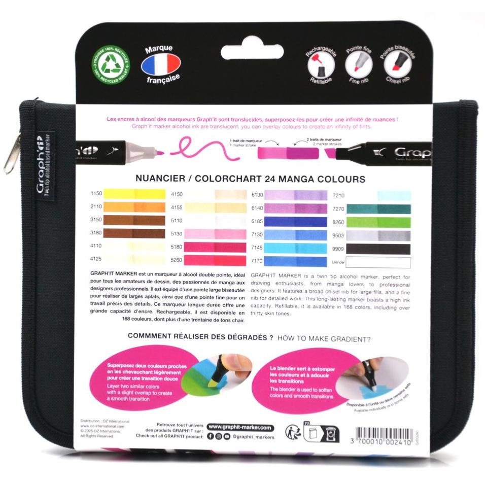 • Nom du Set : Graph'it - 24 Marqueurs à Alcool - Manga - Couleurs manga