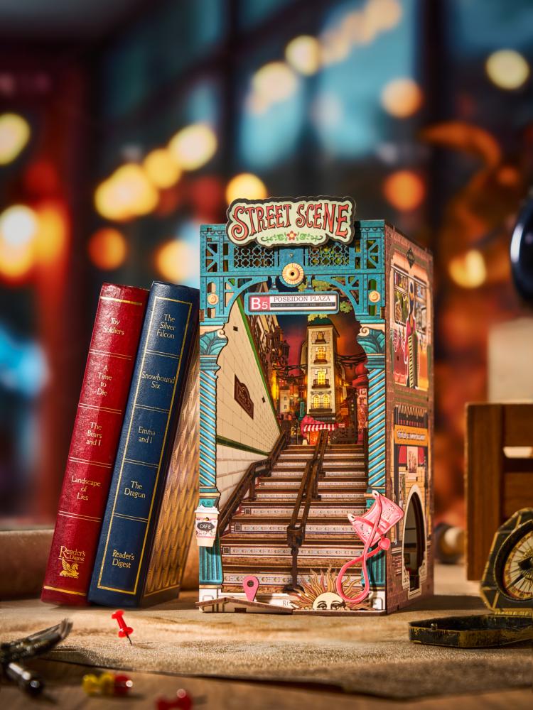 Kit Maquette Book Nook à fabriquer Scène de Rue 23x13x25cm TGB13 Serre-livres Street Scene 3D miniature Rolife